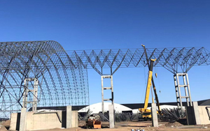 干煤棚網架主要搭建機構為平面剛架、平面桁架、平面拱以及柱面網殼結構。